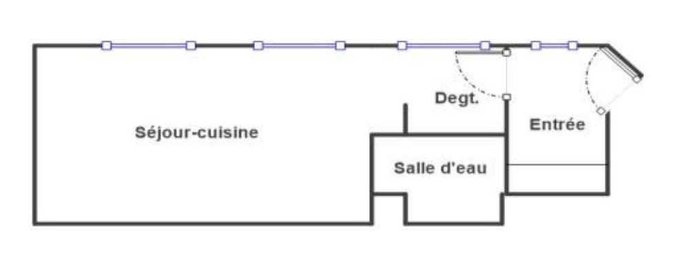 Il comprend : une entrée avec placard, un dégagement, une salle d'eau avec WC, un séjour avec une cuisine ouverte.