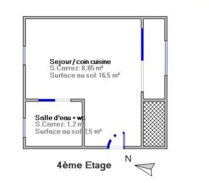 Traversant nord-sud, il détient un plan optimisé il a une superficie Loi Carrez de 10,05 m² et une surface au sol de 19,00 m²